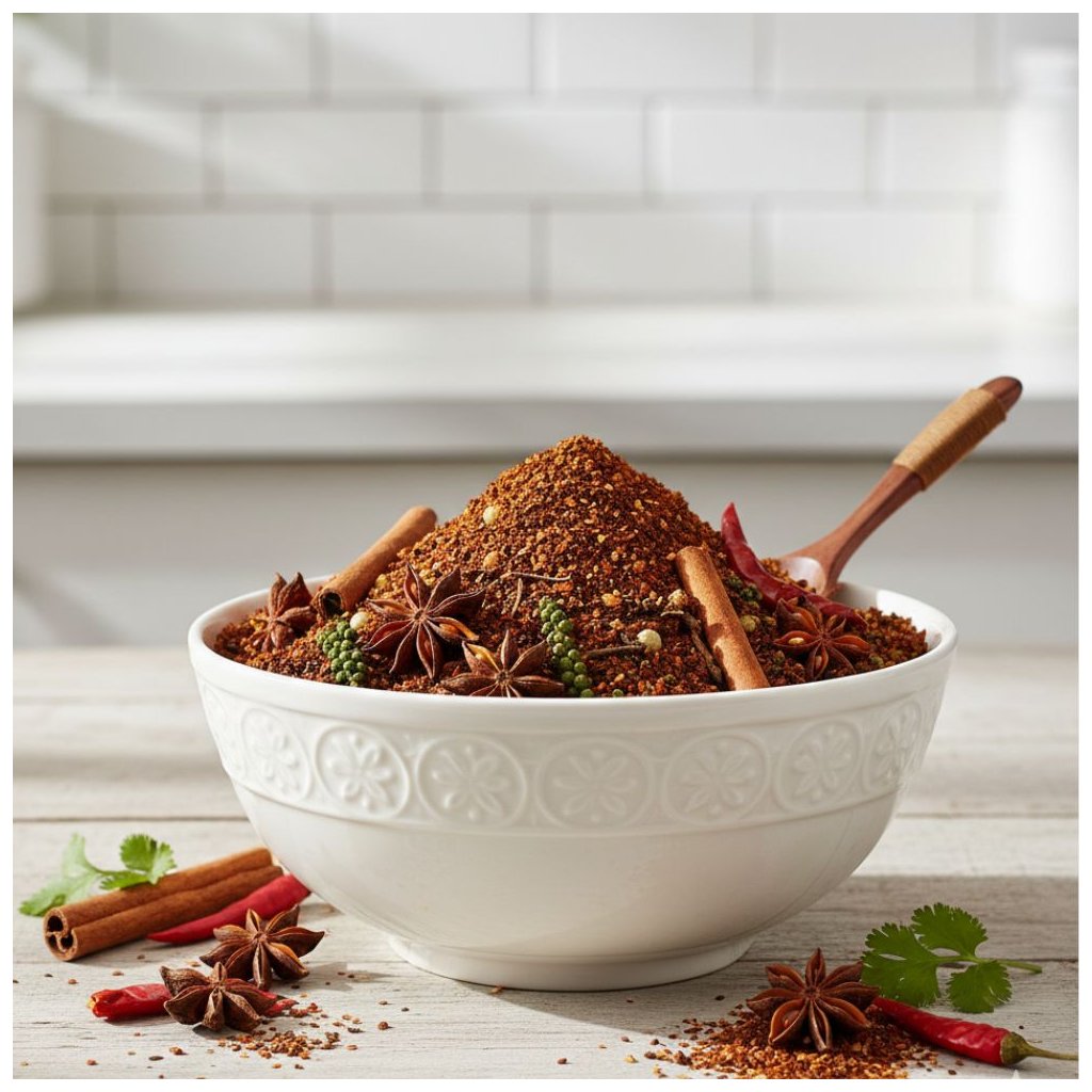 Vybrané koreniny – rasca, fenikel, koriander, kardamóm, klinček, škorica, cesnak, čili – sú najskôr sušené pri nízkej teplote, aby si zachovali arómu a živiny. Potom sú precízne čisté a triedené, aby sa odstránili nežiadúce čiastočky. Následne sú jemne drvené, premiešané v správnych pomeroch podľa receptúry – a nakoniec balené do vzduchotesných obalov v hygienických podmienkach, aby zostali čerstvé a aromatické.