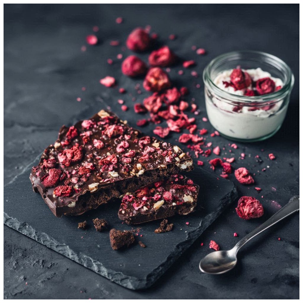 Predstav si červené, sladké a voňavé jahody priamo zo záhrady, teraz dostupné v podobe lyofilizovaných jahodových plátkov. Chrumkavé, ľahké a bez pridaného cukru, vhodné na zdravé maškrtenie kedykoľvek a kdekoľvek. Proces mrazového sušenia uchováva intenzívnu chuť, prírodnú arómu a cenné živiny.