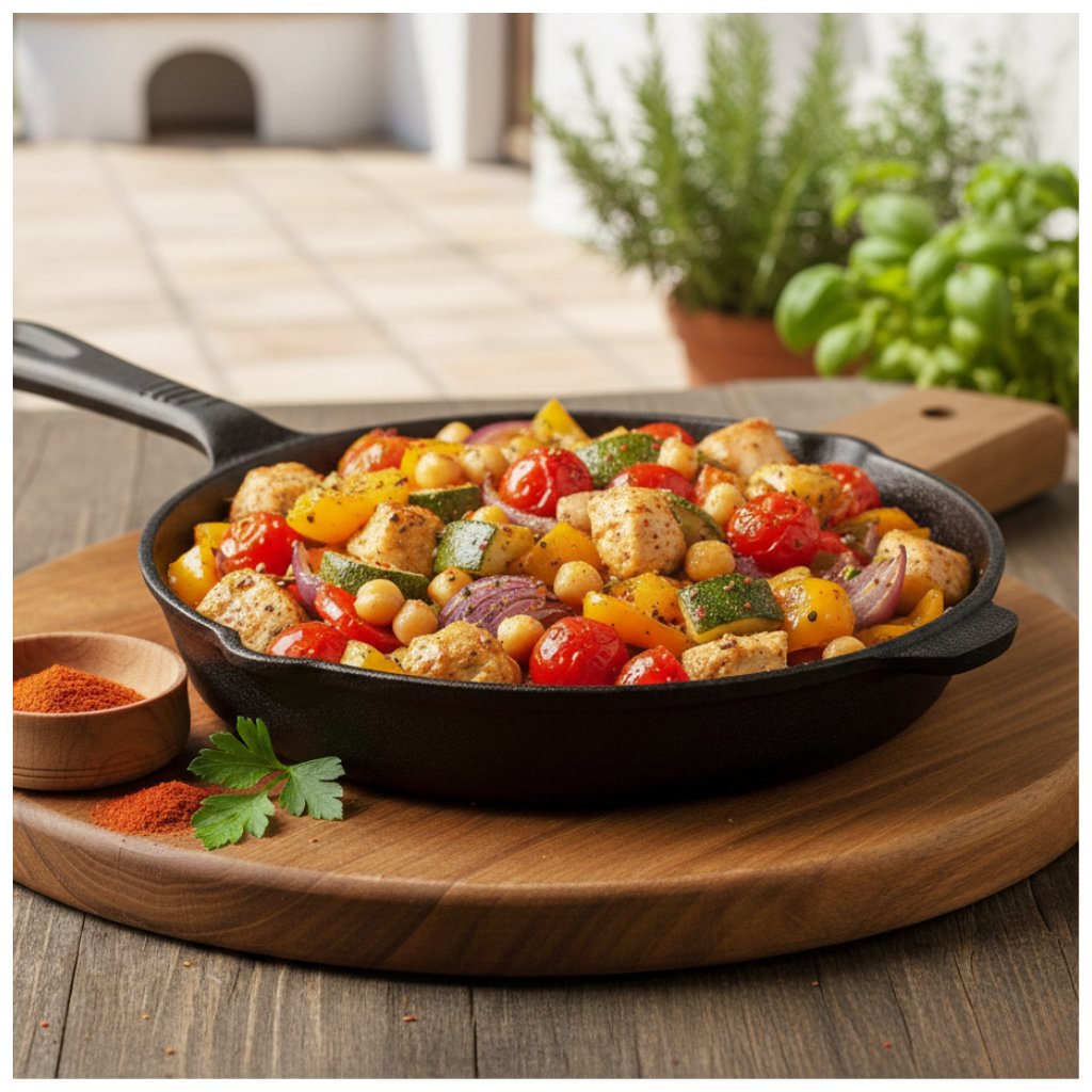 Toto jedlo spája šťavnatosť viacerých druhov mäsa s jemnou chrumkavosťou zeleniny, pričom korenie na ražeň všetko dokonale prepojí.