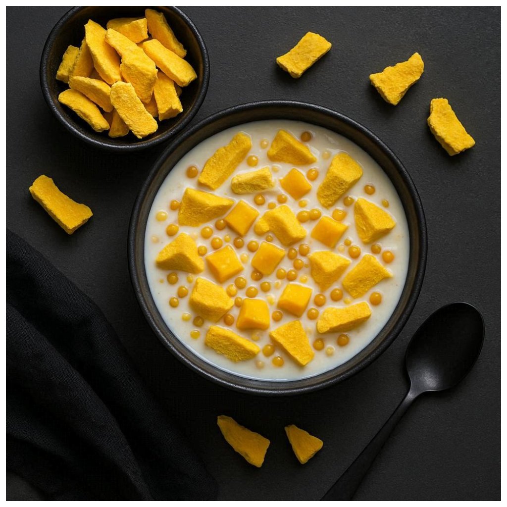 Pamätáš si tú šťavnatú, sladkú chuť zrelého manga, ktoré sa rozplýva na jazyku? Naše lyofilizované mango ti ju prináša kedykoľvek – bez cukru, farbív či konzervantov. Vďaka sušeniu mrazom si zachováva autentickú chuť, prirodzenú sladkosť a dôležité živiny. Chrumkavé, výnimočné a ideálne ako zdravý snack na cesty či k práci.