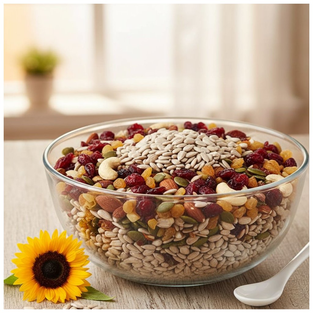 Tieto malé nutričné poklady sú nabité benefitmi, ktoré si Vaše telo zamiluje. Sú mimoriadne bohaté na vitamín E, silný antioxidant, ktorý je nápomocný pri ochrane buniek a dôležitý pre mladistvý vzhľad. Zároveň vám dodajú esenciálne minerály ako horčík pre zdravé svaly a nervovú sústavu, a selén, ktorý podporuje imunitu. Slnečnicové semienka sú tiež fantastickým zdrojom rastlinných bielkovín a zdravých tukov, čím prispievajú k dlhotrvajúcemu pocitu sýtosti a vyváženej energii počas celého dňa.