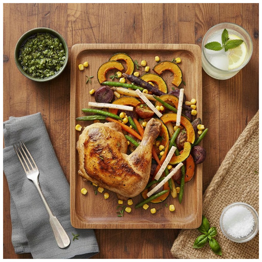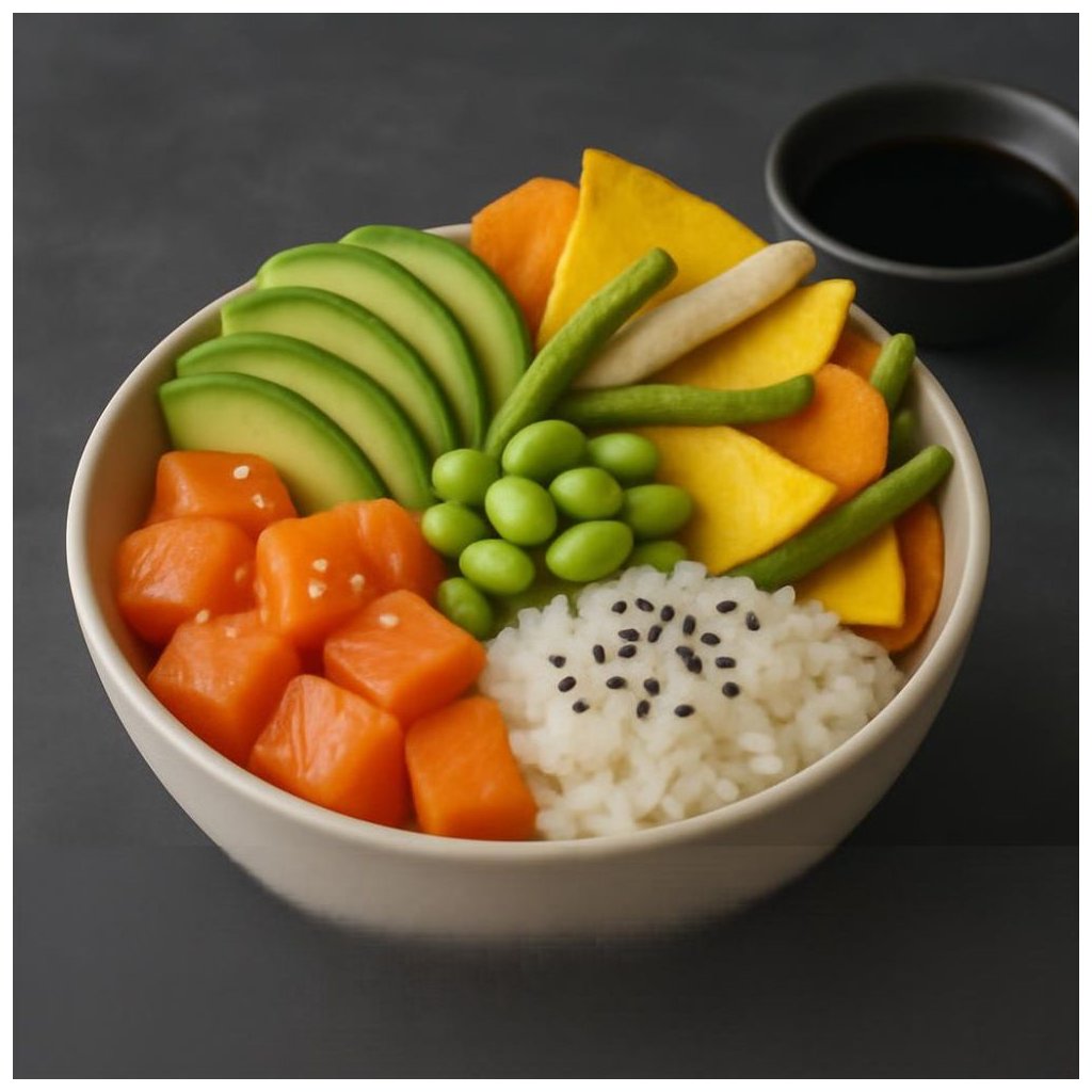 - 🌈5 druhov zeleniny – sladké zemiaky, tekvica, taro, mrkva, zelené fazuľky.