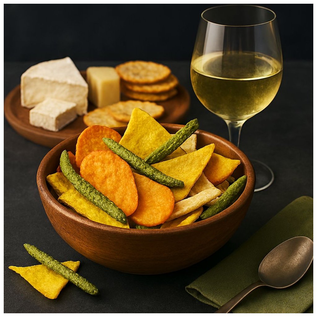 Predstavte si záhradu plnú farebnej zeleniny, ktorú slnko premieňa na sladké a svieže plody. Z každého koreňa, struku a plodu sa stáva malý chrumkavý zážitok. Zeleninové chipsy vznikli ako oslava tejto rozmanitosti – prenášajú do každého sústa kúsok prírody a radosti.